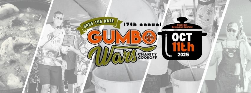 Mark your calendars the 17th Annual Gumbo Wars charity Cook-off is comin’ back to historic downtown Sanford on October 11, 2025!